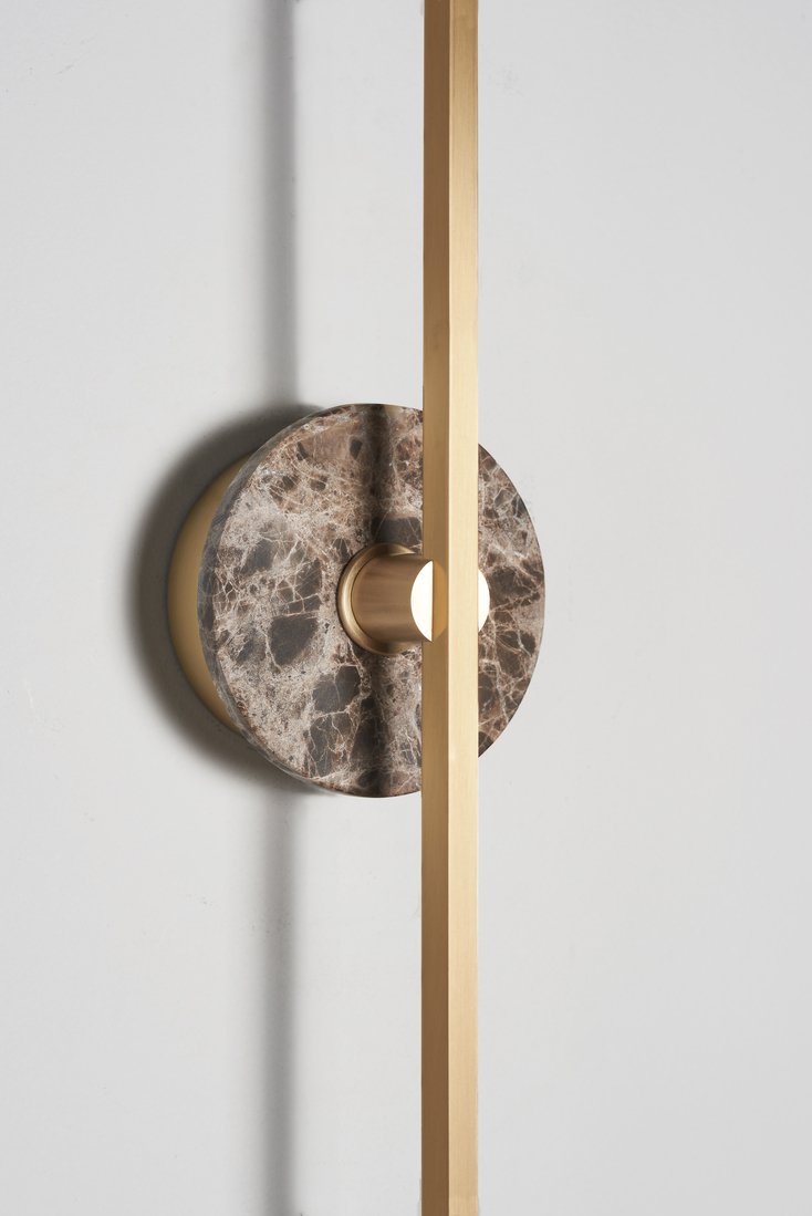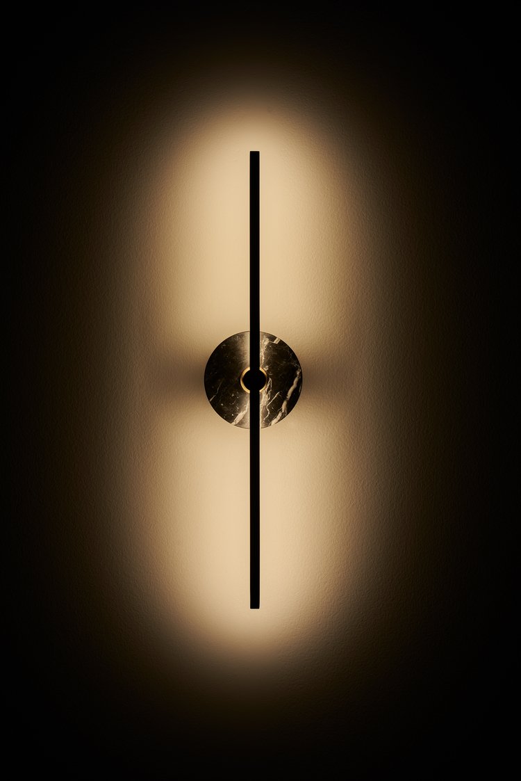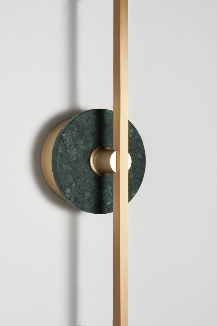 In addition to its sleek design, the Stick wall sconce also features a decorative marble element that adds a touch of color and solidity to the overall structure. The marble serves as a pure decorative element that enhances the visual appeal of the sconce, making it a statement piece in any room.
