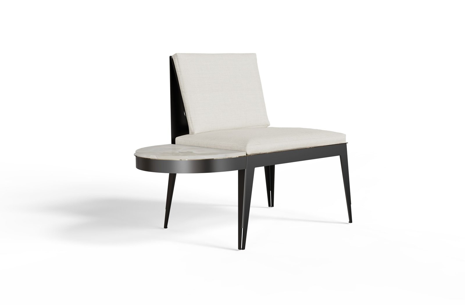 Blending comfort and practicality, the metal lounge chair with side tray creates a seamless design. The attached tray, subtly integrated into the structure, offers a convenient surface without compromising the chair’s minimalist elegance.