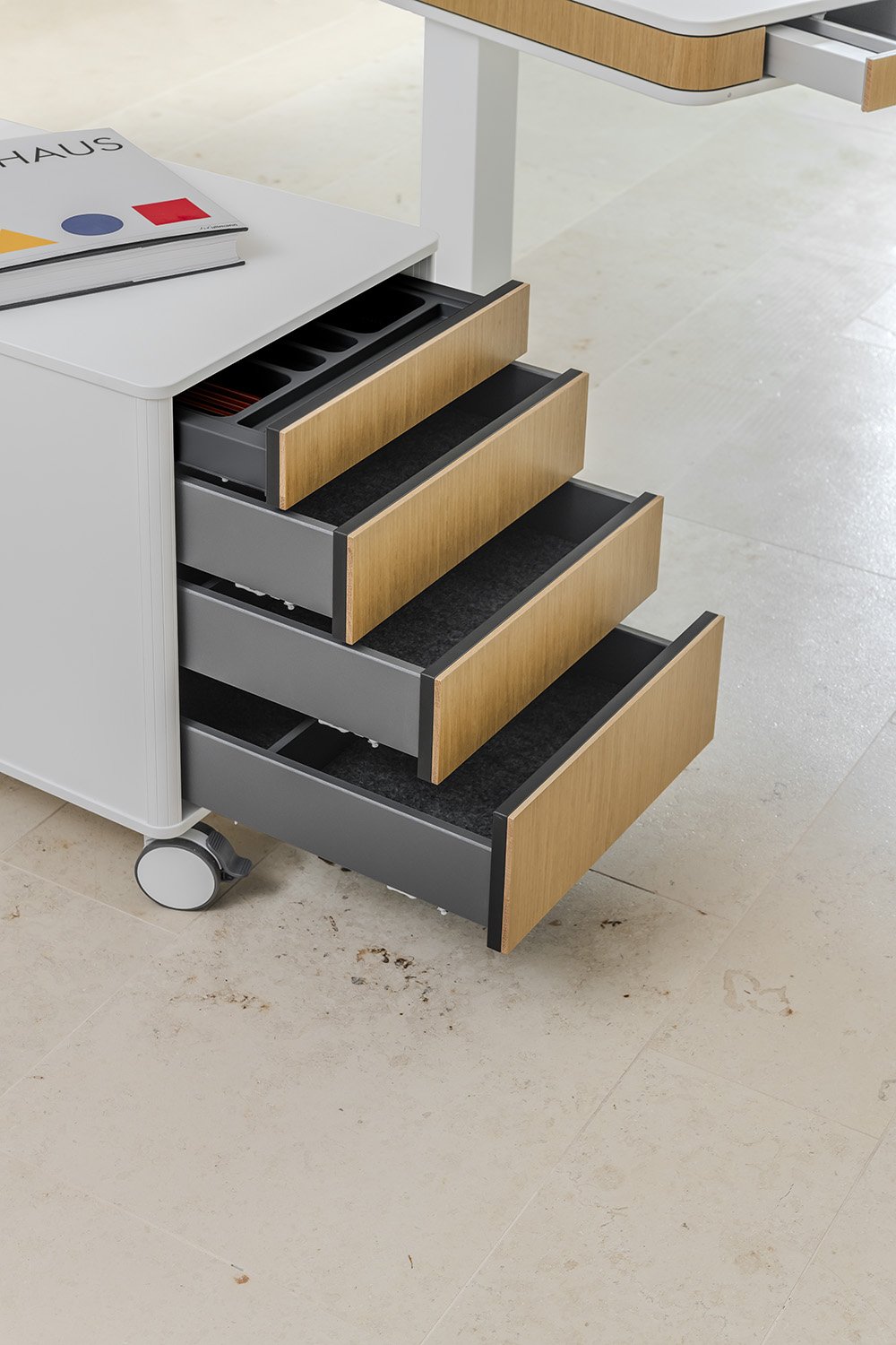 Unmissable and yet pleasantly unagitated, the C8 is a coherent extension to the T6 or T8 and still surprises with a shelf compartment on its back.