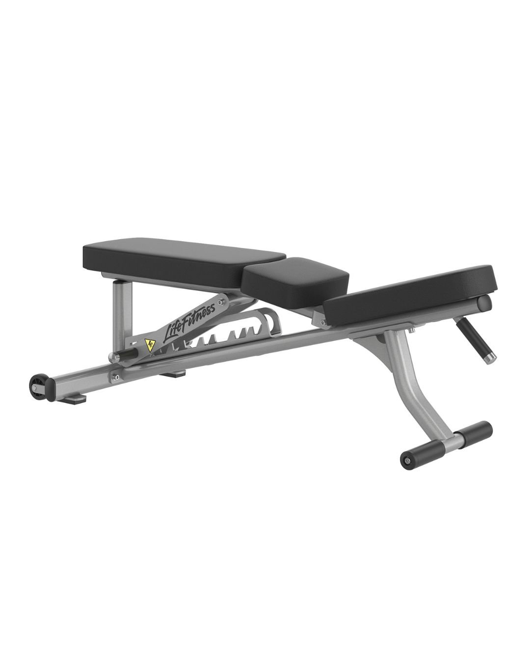 The Life Fitness Multi-Adjustable Bench provides ultimate versatility for strength workouts in any space. Adjustable for flat, incline or decline positions, the bench is lightweight and portable, so it’s easily repositioned for workouts or storing it away.