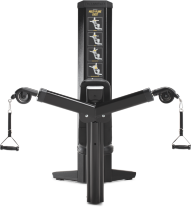 The GENESIS Multi-Plane Chest embodies the best in cable-based functional training. It can accommodate movement progressions from seated to standing and from one arm to two, with full range of motion. This versatility gives trainers (and users) the ability to program just about any sport- or life-specific exercise through all planes of movement. Add a bit more challenge by exercising standing behind the machine, adding rotation or including accessories like stability balls to test balance.
