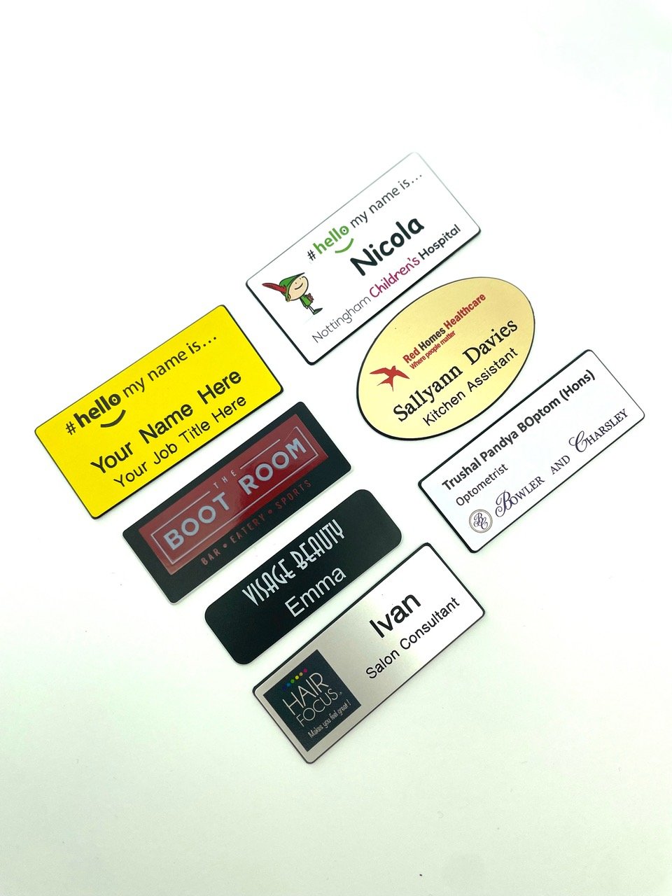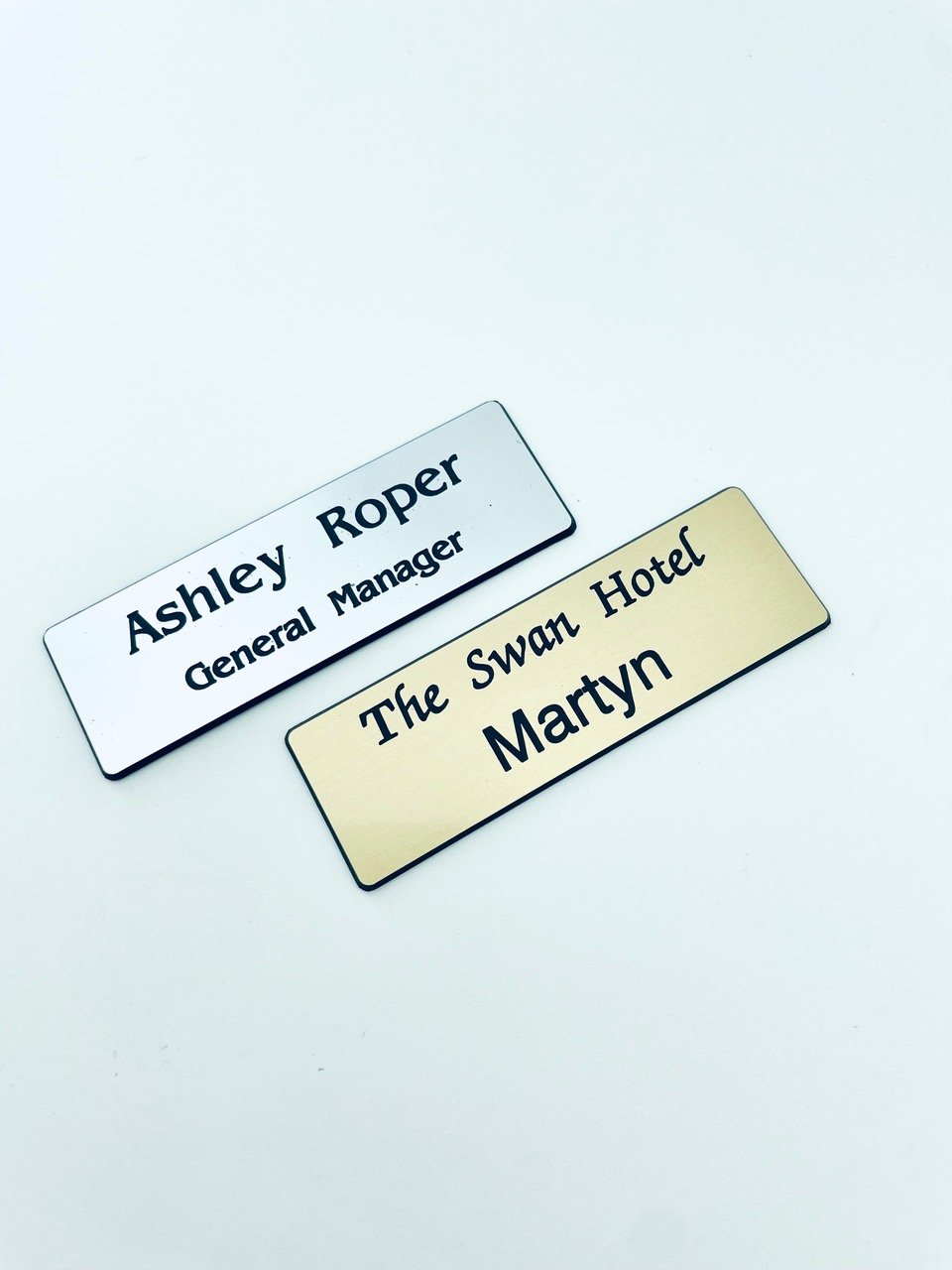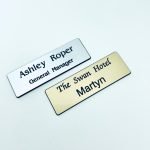 We can provide personalised plastic or metal name badges in a range of styles.