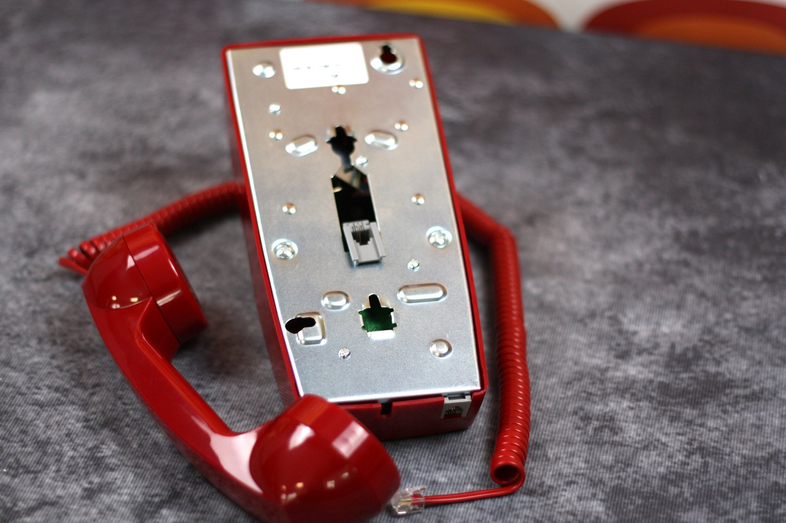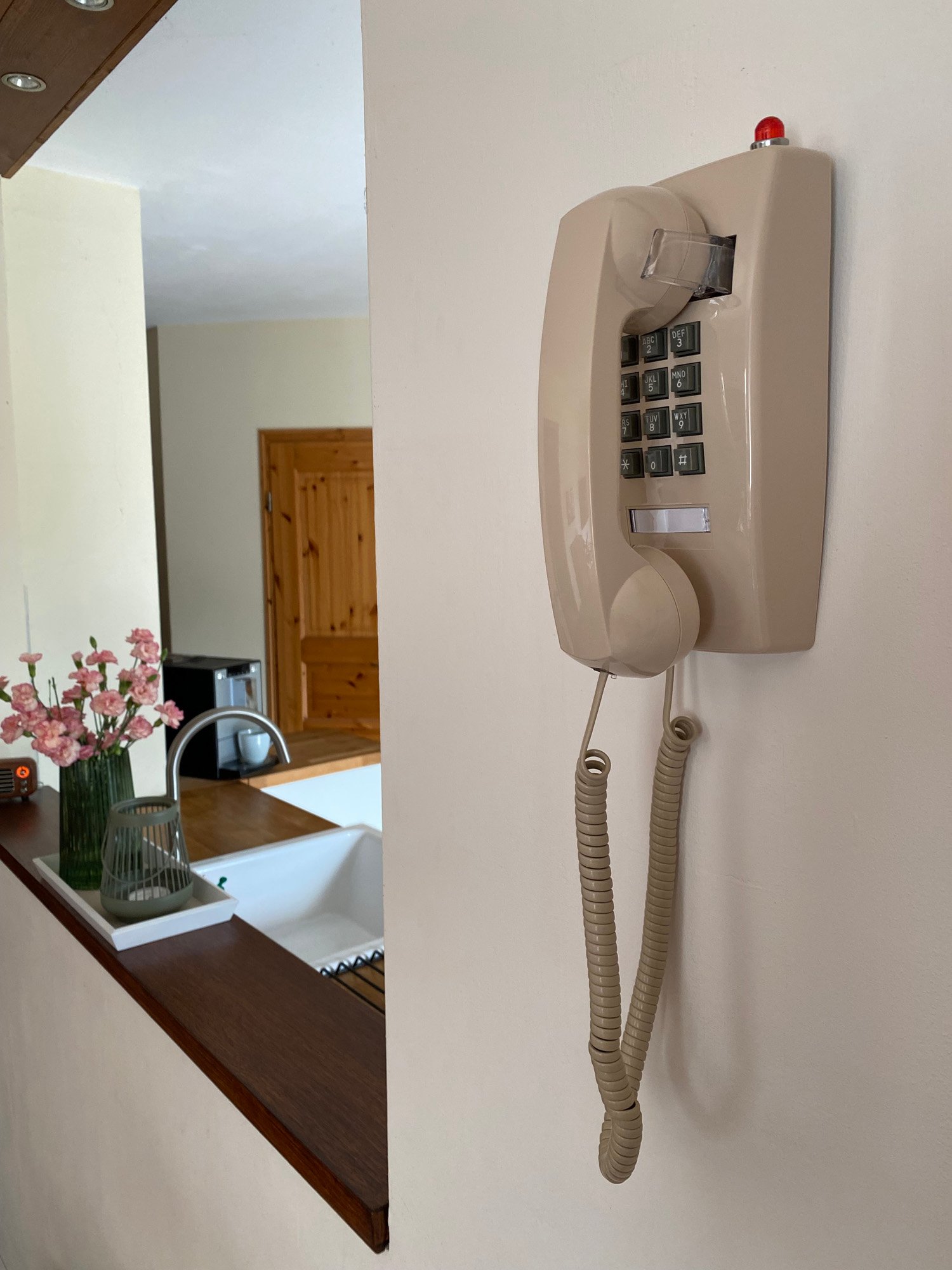 Revive the 70s flair in your hotel with the Opis WallFon Cable, a designer landline phone that marries vintage aesthetics with modern utility. This fully functional telephone enhances any space with its classic push buttons and genuine metal bell, all while boasting compatibility with modern connections.