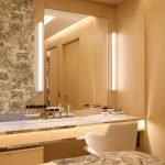 - Wall cladding in wood / textile wrapped panels / ceramic tile / wallpaper / other desired material