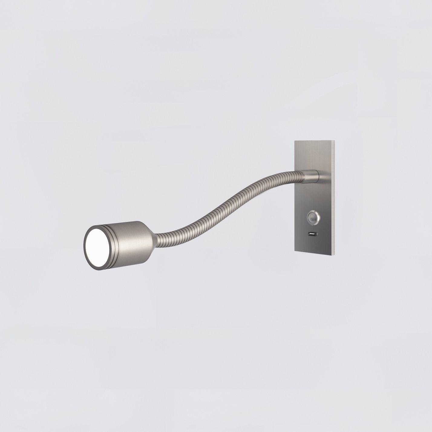 The FLEX collection is a flexible and discreet selection of headboard recessed reading lights easily adjustable on a flexible cord which allows full adjustability. Available in a polished chrome or brushed nickel, with or without USB port.