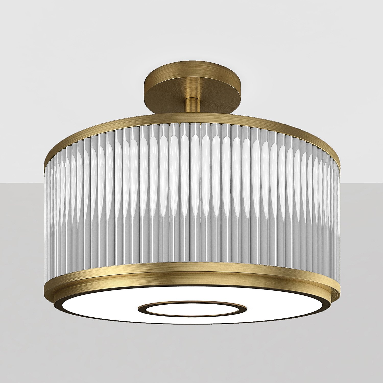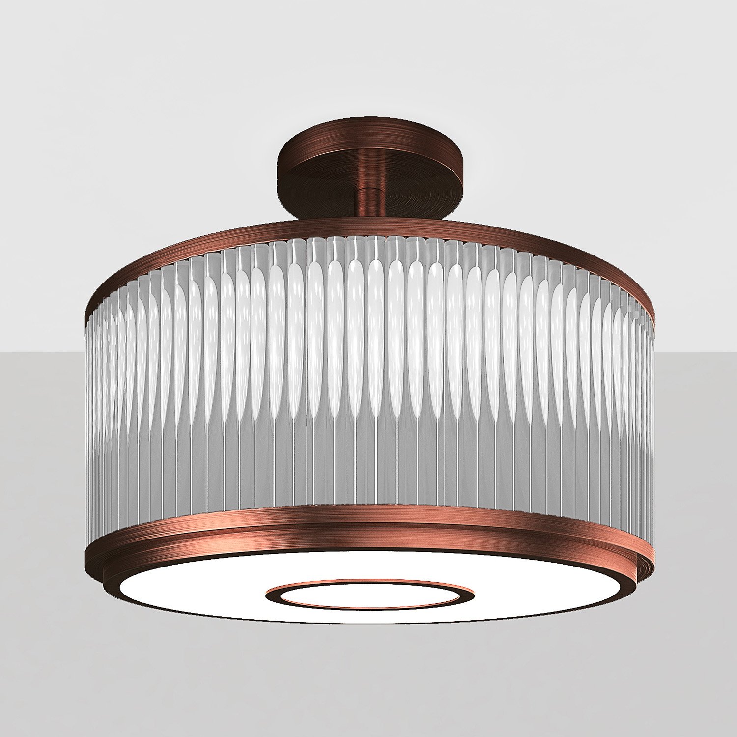 STELLA is an Art Deco inspired collection, which is versatile in any setting, yet unmistakably classy and glamorous. The cylindrical shapes combined with clear vertical glass rods and brushed brass edges encasing the light source emanating an enchanting glow. Available in both brushed brass or antique copper as standard.