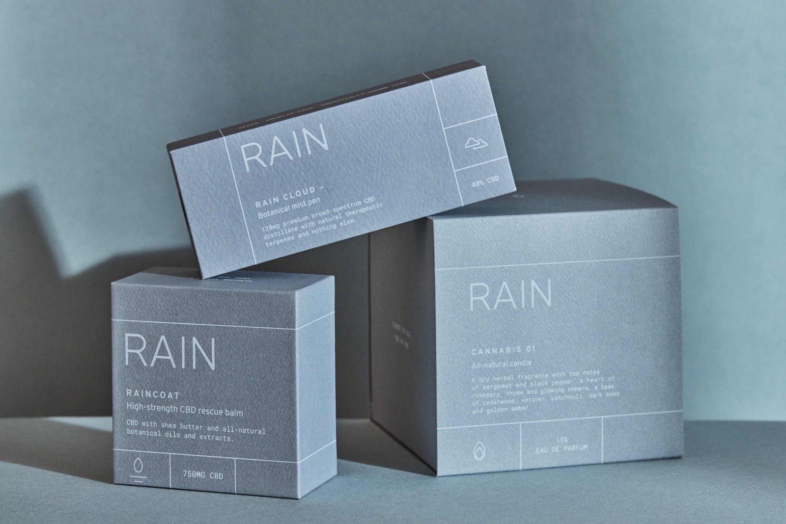 The complete RAIN experience. Our signature super-clean RAIN CLOUD pen, high-strength RAIN CLOUD CBD rescue balm and unique much celebrated all-natural large alabaster candle which we call CANNABIS 01.