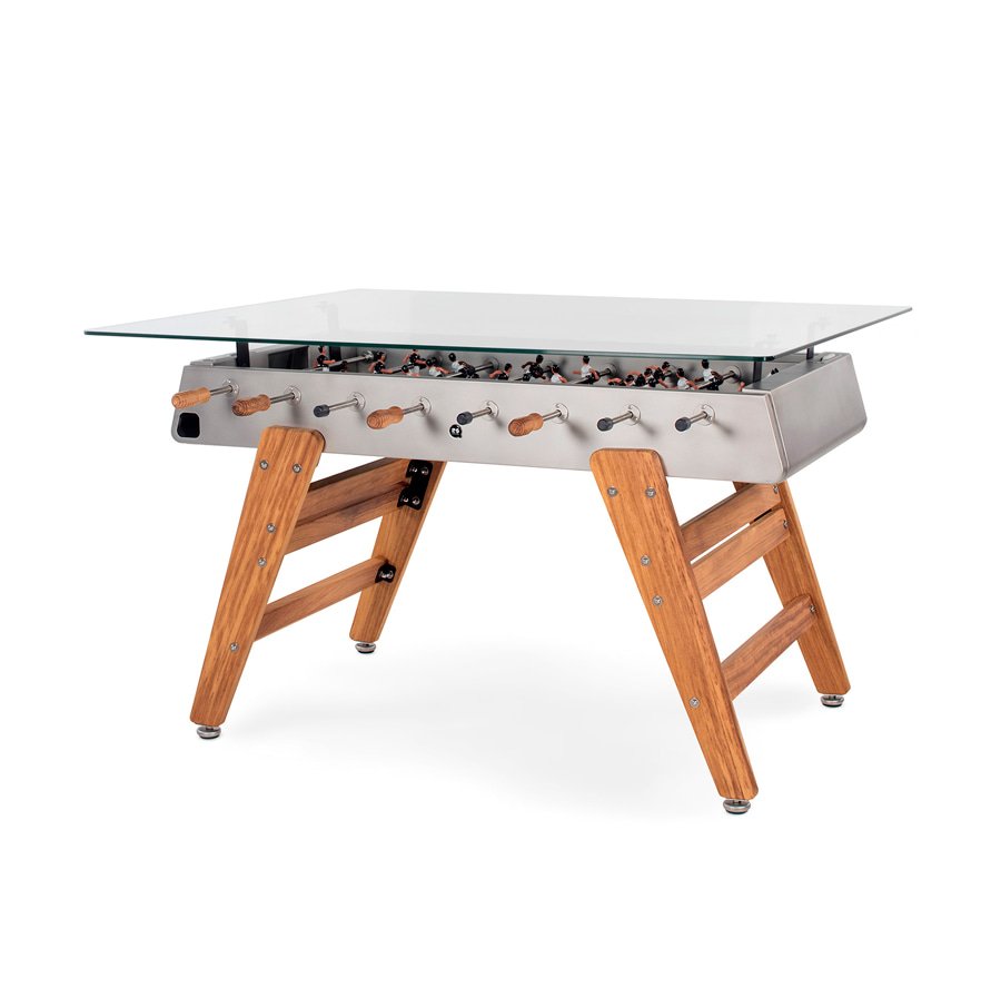 The RS3 Wood Dining is the natural progression of our determination to push the boundaries. We’ve incorporated wood in our football tables and the outcome is a warm and friendly, more contemporary design. The secret lies in the mix, in achieving the balance between the elements so that each one gives its best. We do not choose just any wood. The choice is iroko, a wood suitable for outdoors, that like metal, it’s extremely durable and hardwearing, an essential requirement in our range of football tables. The essence remains intact, so you can enjoy the game without having to compromise on design.
