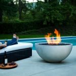 The Solus outdoor Hemi fire bowl 36 is the flagship and the first fire pit Solus ever produced. That was 10 years ago when fire pits were just starting to show up in residential and commercial applications. Los Angeles and the west coast of the USA is the hotbed of concrete fireplace applications. Solus was one of the first to produce a fire bowl on a sustained basis. Landscape architects and garden designers in North America almost universally specify some sort of fire feature in virtually every design and setting now imaginable. Having been in the business of architectural concrete for almost two decades we were smitten with the idea of fire erupting from one of our concrete bowls.
