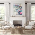 This painting measures 48″ x 36″. It is made with acrylic paint on gallery wrapped canvas, and has painted light, neutral grey sides. It was created in 2019, and is signed by the artist. It is wired and ready to hang.
