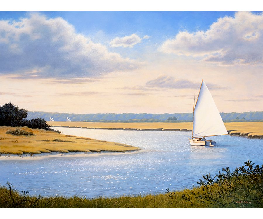 “We are only passing through this lifetime of ours,” Pollera said in reference to his work. “This is a revolving window of constant change and taking in the beauty from a visual perspective is fascinating and interesting; that is what fuels my passion. Living within close proximity to the salt marshes and shoreline has enabled me to capture a moment in time. I feel a deep connection with my subject and it constantly inspires me. I hope that I convey a feeling through my paintings that will be shared for generations and reflect our love for the local waters as they are today.”
