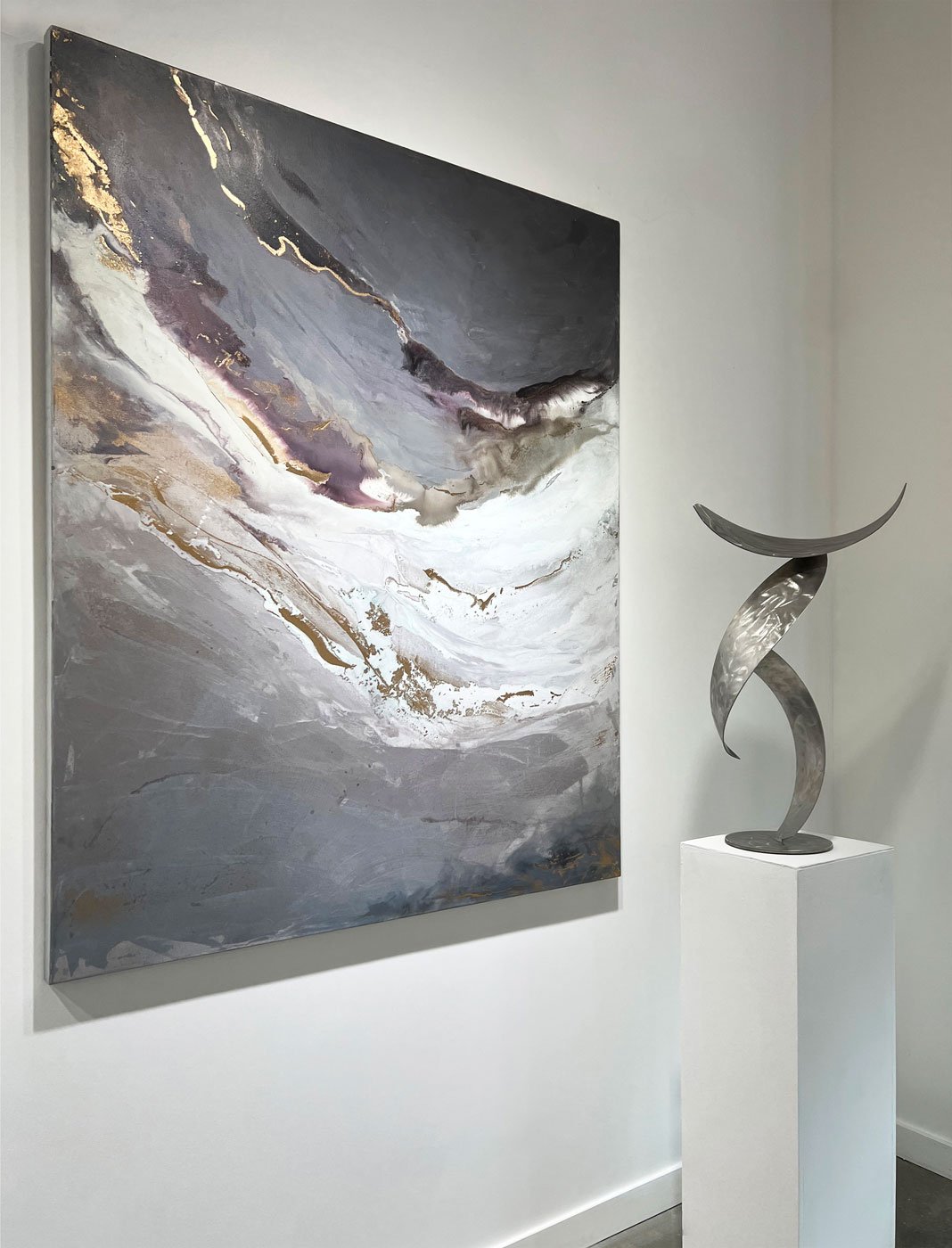 About her work, Julia says, “When you layer on the paint just right, so that it dances across a wash of another color, a new level of dimension is created. Combine that dimension with the exploration of color and I’ve just begun to captured something meaningful. My style is single-minded and focused on the simplicity of beauty in the moment. My goal is to drown out the noise and clutter to find a sense of calm through light. The end result is clean, fresh and modern.”
