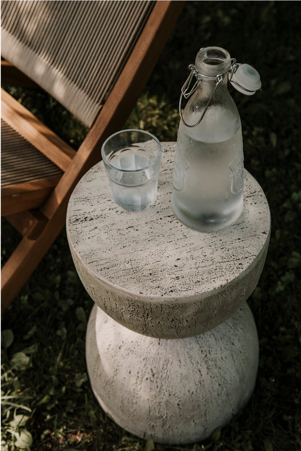The magnesium oxide from which this end table is made produces a highly realistic concrete finish, even featuring unique veining. Both in texture and appearance, this Scandinavian-inspired outdoor table is a real eye-catcher! Color variations are possible. That’s the beauty of natural materials!