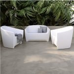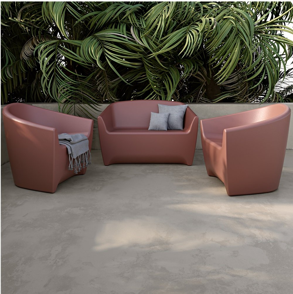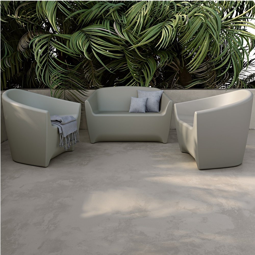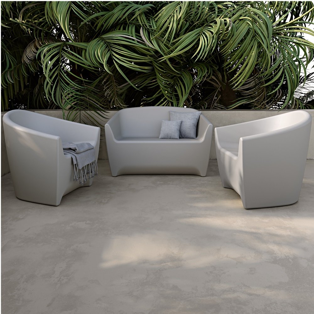 Select this UV, water, fade, and wind resistant polyethylene armchair or loveseat. These 1 or 2-seater is at home in commercial spaces such as swimming pools, hotels, and spas, thanks to its solid construction and can be kept outdoors all year round.