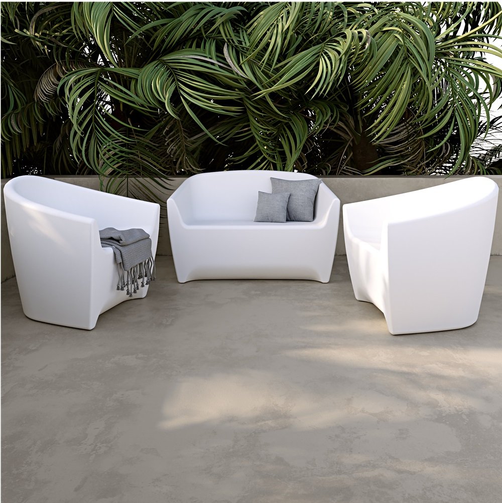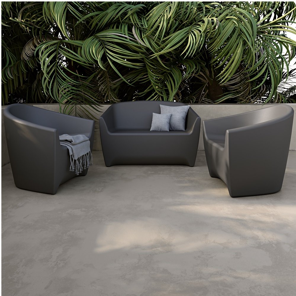 Whether you’re an individual or a business, this patio set including 2 armchairs and 1 loveseat in marine-grade polyethylene is sure to win you over. Installed on a terrace, poolside or in a garden, all pieces are designed to withstand the elements. Water, humidity, sun and cold will not cause their deterioration. Every piece of furniture will maintain its beautiful appearance all year round. For greater wind resistance, insert pebbles or sand in their base. This will prevent them from blowing away!
