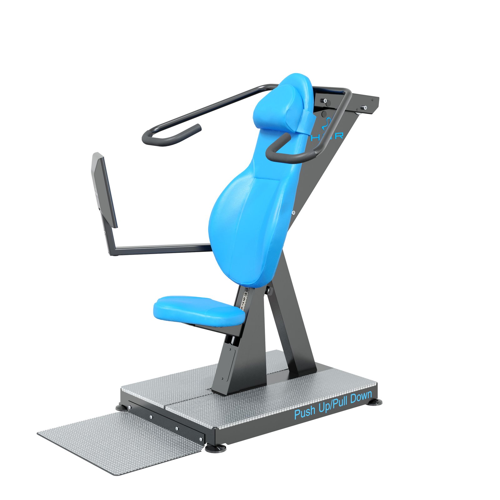 Dual function Push Up / Pull Down unit provides targeted training of shoulder and back muscles. The unit provides a space saving solution without the need for two machines. HUR's Pneumatic Strength training Range uses a near silent air compressor which enables the users to use the gym without the "clunky" noise of weights making it the perfect solution within a hotel setting. Through the use of HUR's SmartTouch Hi-5 System, users can also activate training programs at the touch of an RFID card or bracelet and track their progress across various hotel locations.