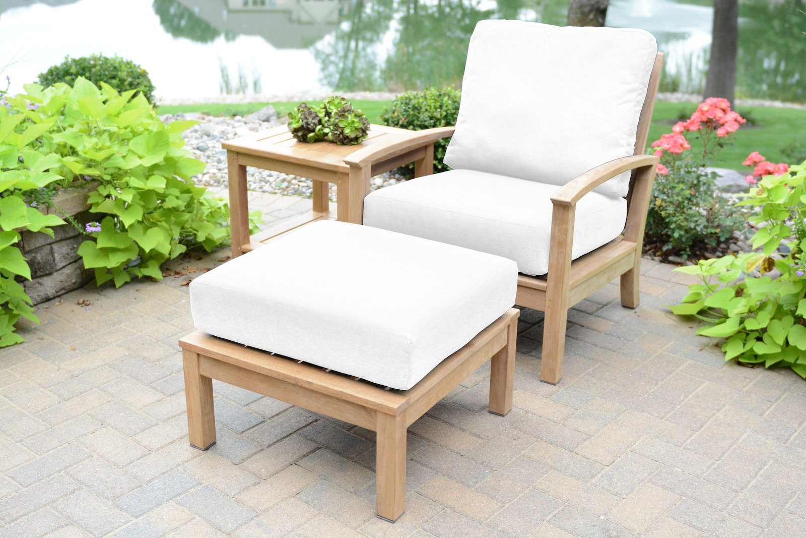 An elegant deep seating customizable sectional set designed to integrate seamlessly into modular or conversational seating arrangements. Built with solid teak framing and generous all weather cushions, this piece delivers flexible layout options while maintaining comfort and refined outdoor appeal. With the ability to customize your personal seating arrangement.