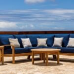 A spacious and inviting outdoor sofa crafted from premium Grade A teak and topped with thick, plush Sunbrella cushions. Designed as a central anchor for outdoor living spaces, it offers deep seating comfort, durability, and timeless style ideal for patios, terraces, or poolside lounges.