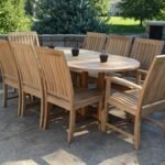 A timeless outdoor dining chair showcasing a gracefully curved teak backrest and sturdy all weather construction. Designed to pair effortlessly with teak dining tables, it offers comfort, durability, and understated elegance for alfresco meals.