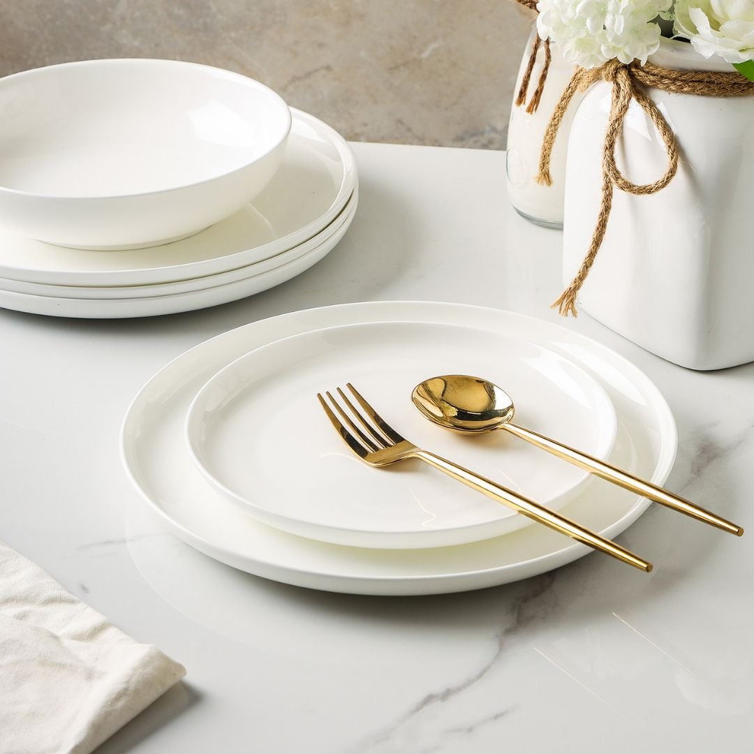 This bone china dinnerware collection is your classic white no-frills design for each white plate and bowl. It is elegant yet simple, making it perfect for everyday use or formal dinners such as holiday gathering and special occasions. Simply pair with your favorite cutlery and silverware and you are ready to dine!