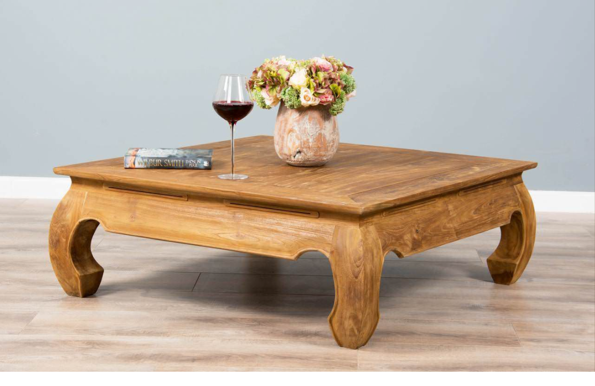 Reclaimed Teak Opium Coffee Table – Available in three sizes  Length 140cm x Width 70cm x Height 36cm Length 100cm x Width 100cm x Height 36cm Length 60cm x Width 60cm x Height 36cm