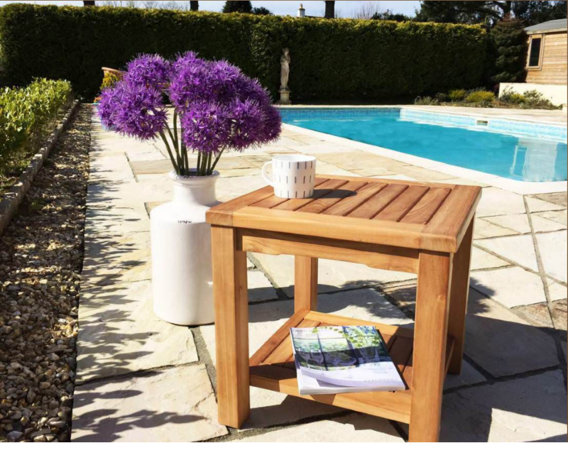 Teak Square Coffee Table with Shelf Length 45cm x Width 45cm x Height 45cm