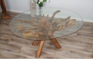 The swirling roots exemplify the beauty of nature, and we’ve made sure that they are visible as you’re seated by incorporating circular, rectangular, square and oval toughened safety glass tabletops.