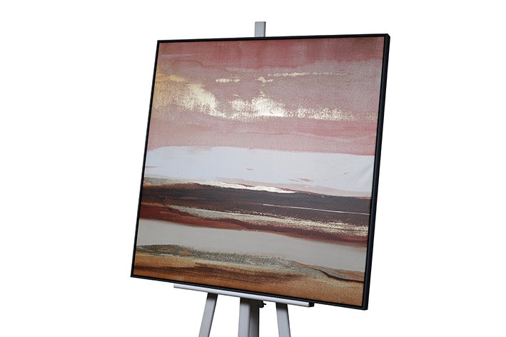 Bring a touch of class to any room with these chic modern abstracts featuring striking metallic accents and textured hand paint. The flecks of gold foil on ‘Solace in Gold no.2’ deliver the perfect glamour statement. Each piece is finished in a thin contemporary dark grey frame and they will be certain to add a touch of glamour to any room throughout your hotel.