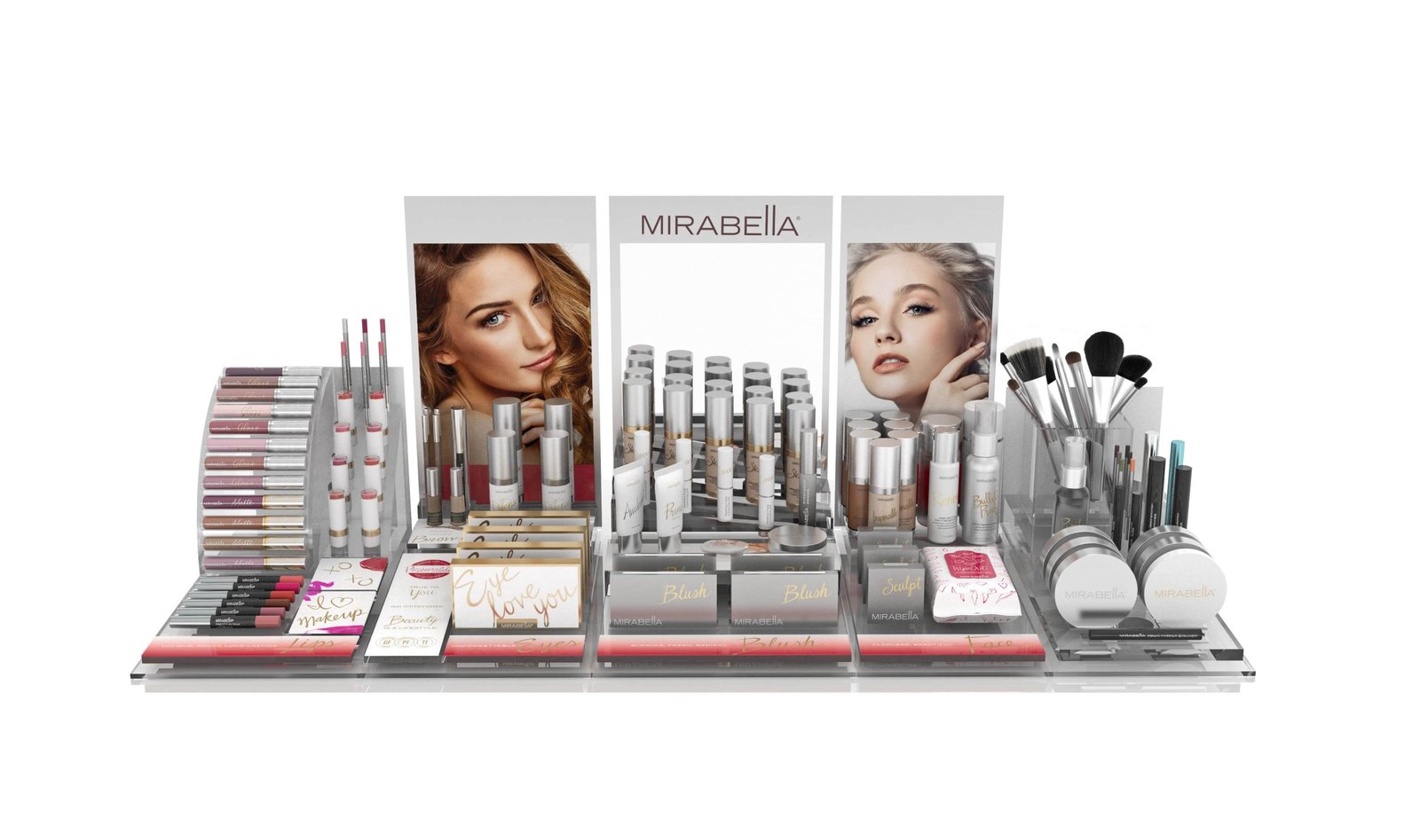 The Premium Line is Mirabella’s full, luxurious acrylic display featuring all 115 Mirabella products. Included are Mirabella’s beautiful Display Unit ($1250 value), a complete set of testers ($2250 value) and free tools for success including retail bags and product catalogs ($150 value).