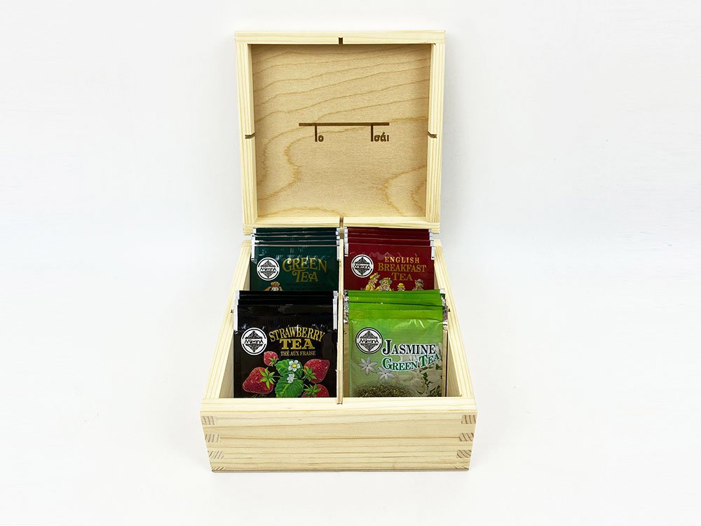 A teabox is ideal to project your tea bag collection. It can also be used in suites or during the afternoon tea. Available designs: