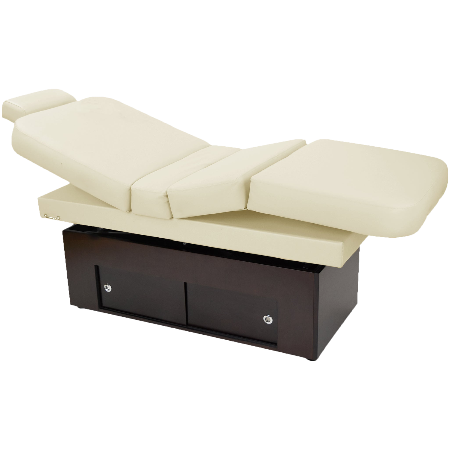 The Sanya Spa and Massage Table is a comfortable, fully-motorized treatment table that is also a great value. We created an innovative lift system and included it in an attractive wood base with convenient storage space. Add optional end drawer, glass doors, or accessories. Now you can have the same easy, push-button top and base adjustments you're used to on more expensive massage tables for an economical price.