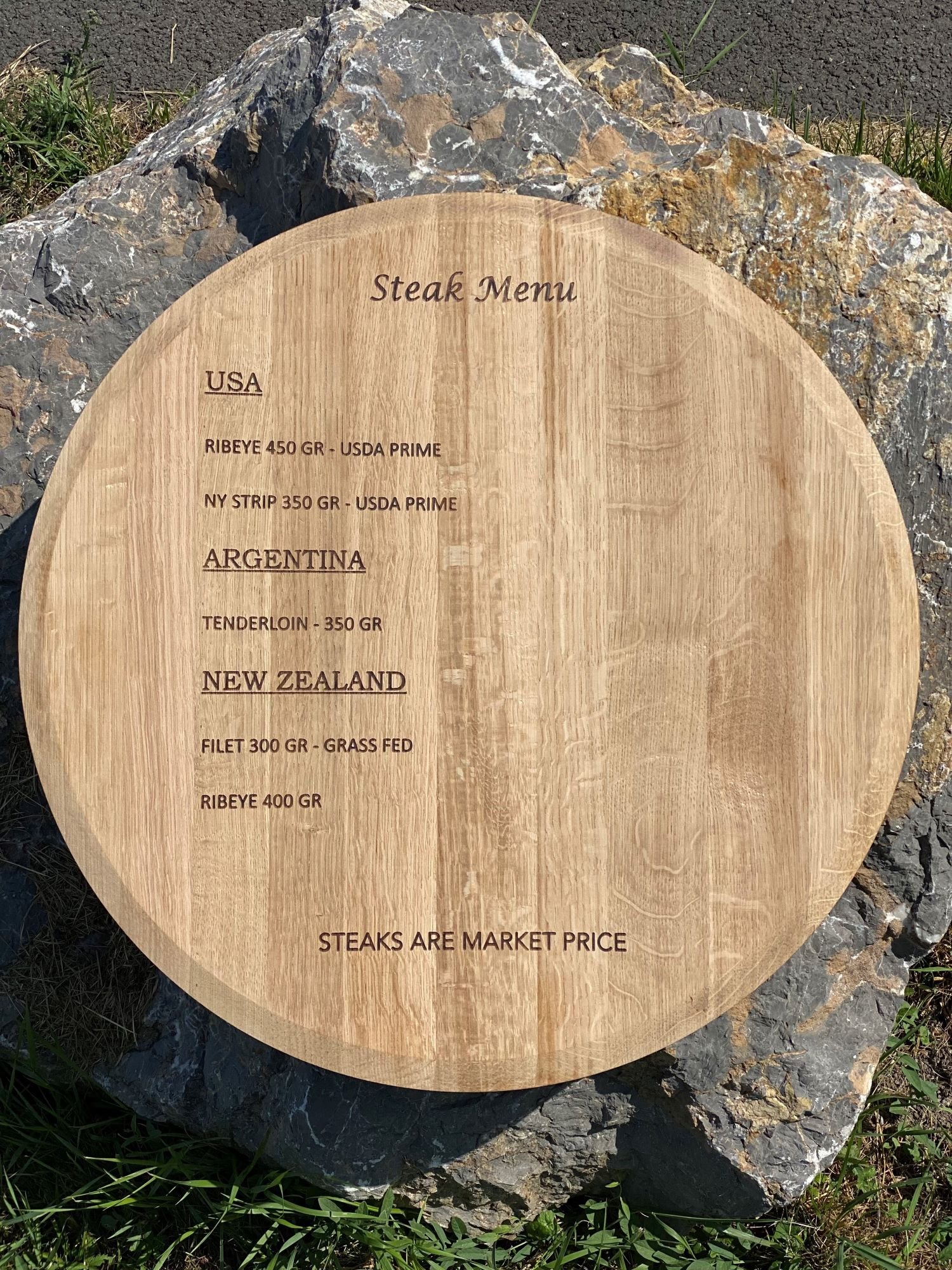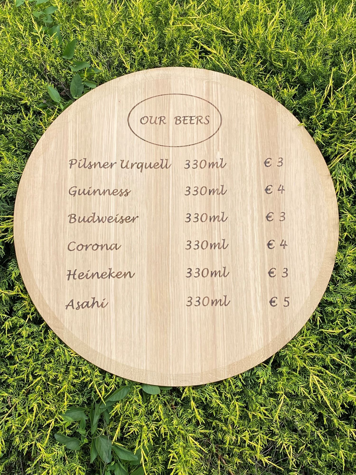 Customized oak plates, the plates fitted into the ends of wine barrels (the heading).