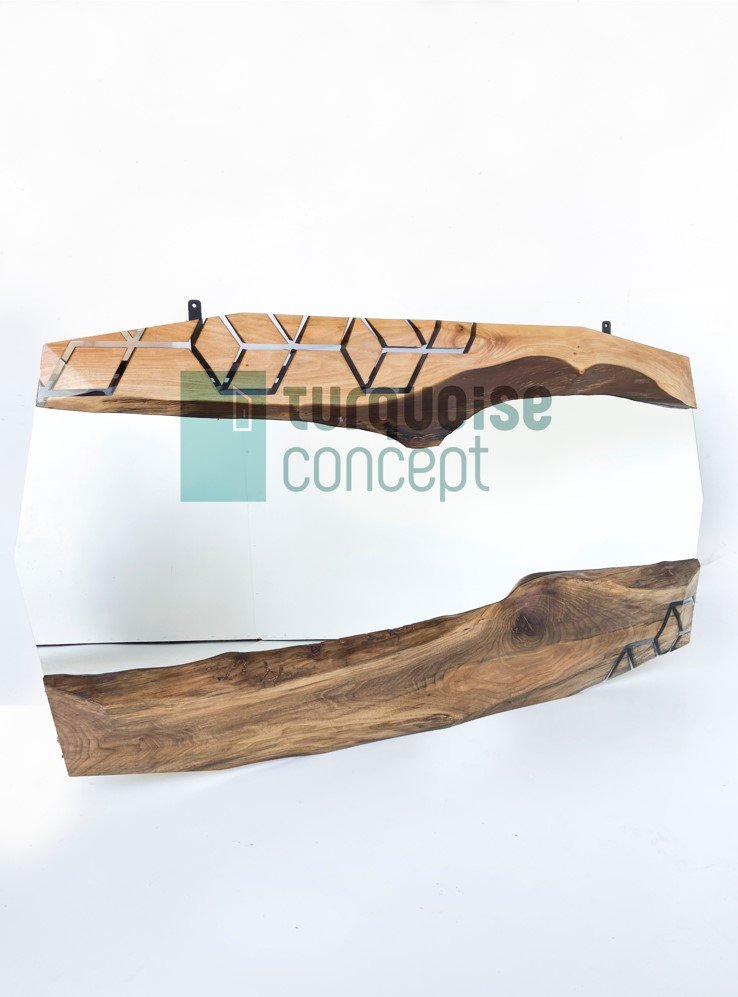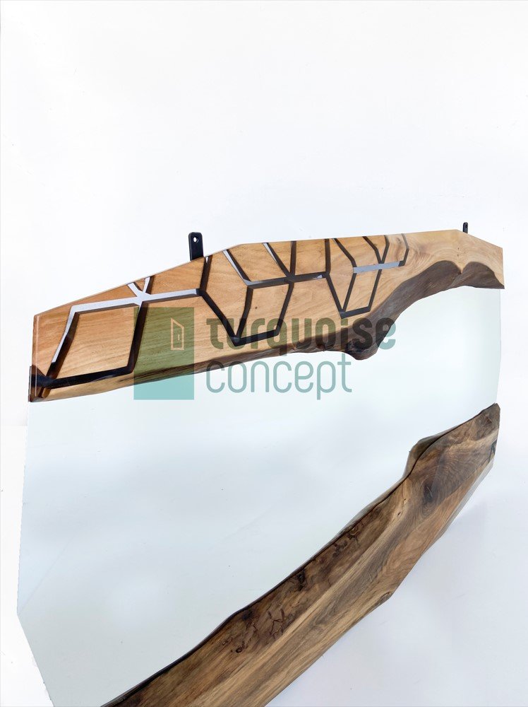 Diamond Line Design Mirror with Premium Quality Clear Epoxy and Walnut Tree Logs.