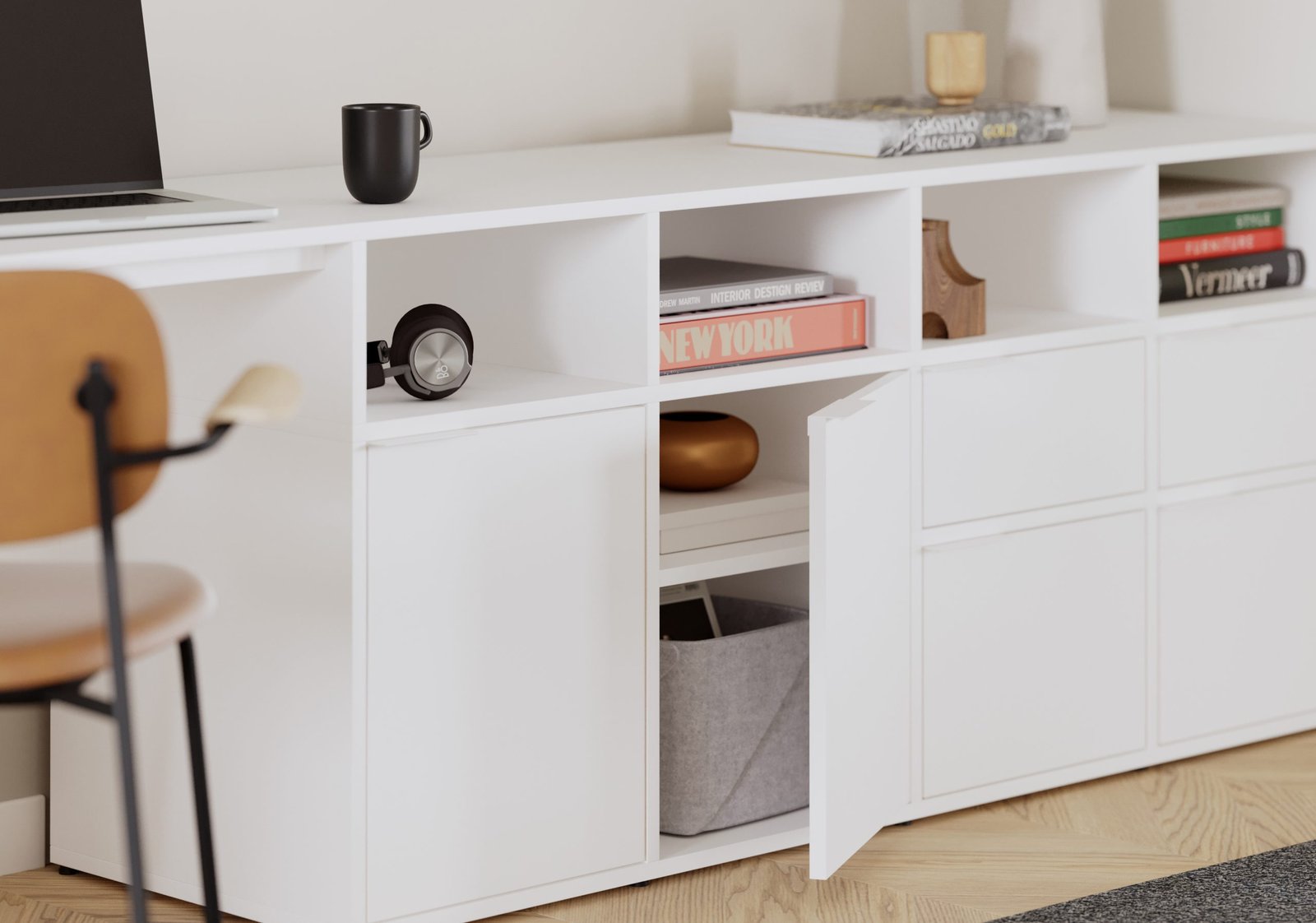 Need more space to focus in your office, studio or atelier? The Tylko Desk is here to keep everyone organised and inspired everyday of the week — yes, even on Mondays. Built with extra tough, anti-scratch HPL material, and equipped with plenty of drawers and doors to keep books at bay, plus papers neatly tucked away, this minimalist yet storage-centric Desk was designed to help you work with ease. Other functional features include an ergonomic height of 73cm for comfortable legroom and two cable openings — on the desktop, and at the back — that can be placed on the left or right side to match your workflow. Easily customise your furniture's size and design, then choose from a range of colours including White, Grey, Grey + Dark Grey, plus Sand + Midnight Blue.
