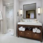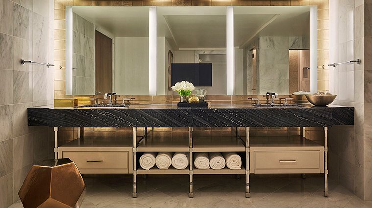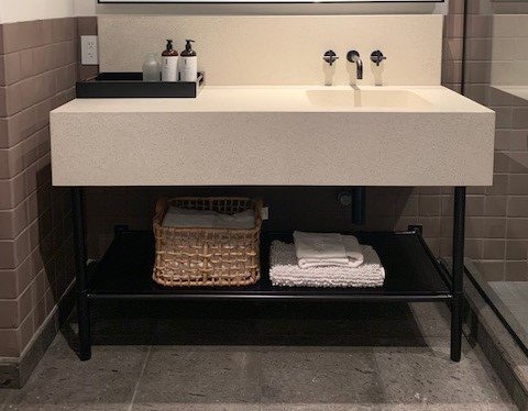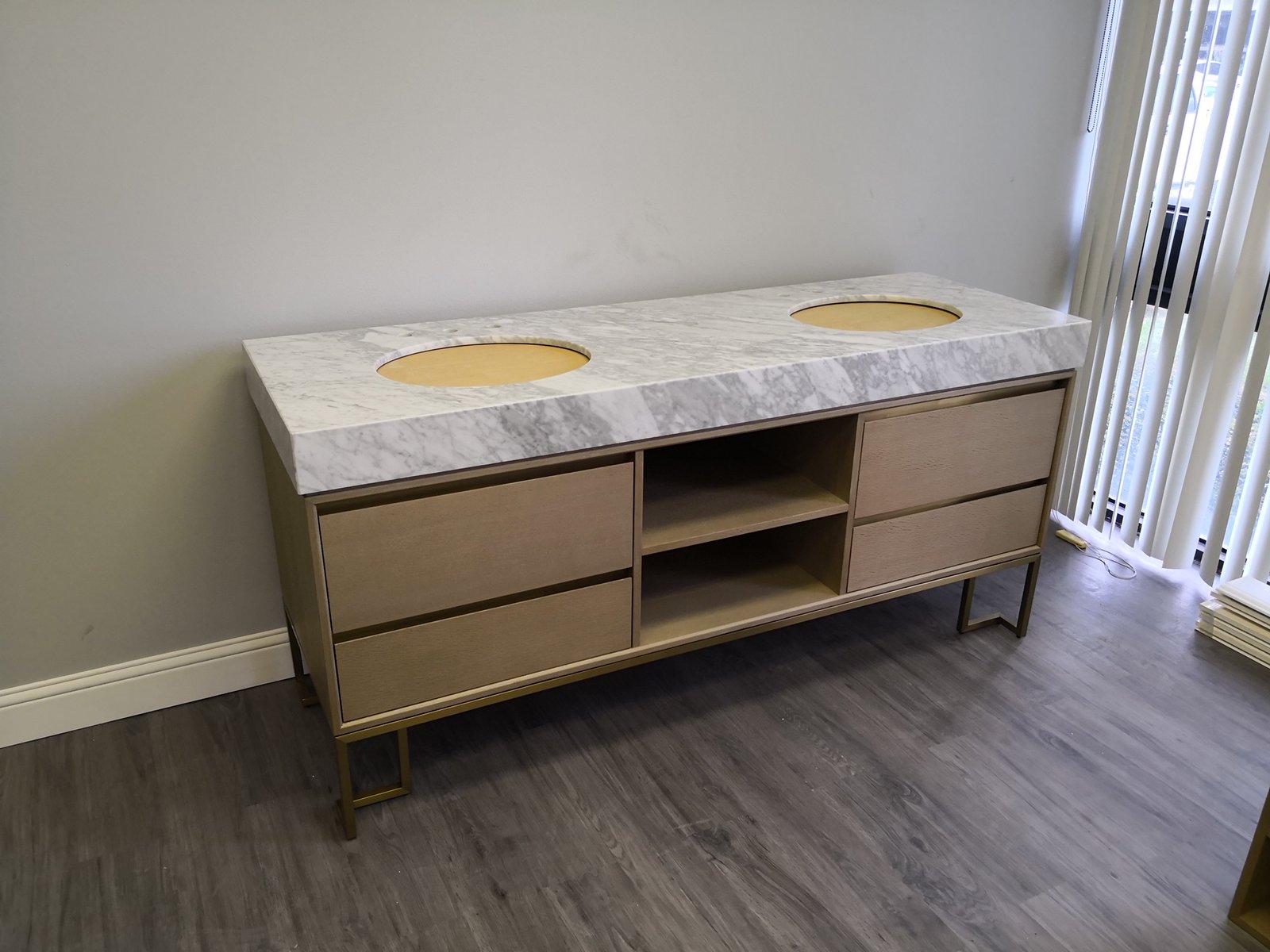 Vanities for hotels can be "stand alone" or "built in", we do both. Every vanity is custom manufactured to meet the clients space, plumbing and equipment needs, lighting requirements, and signature brand design.