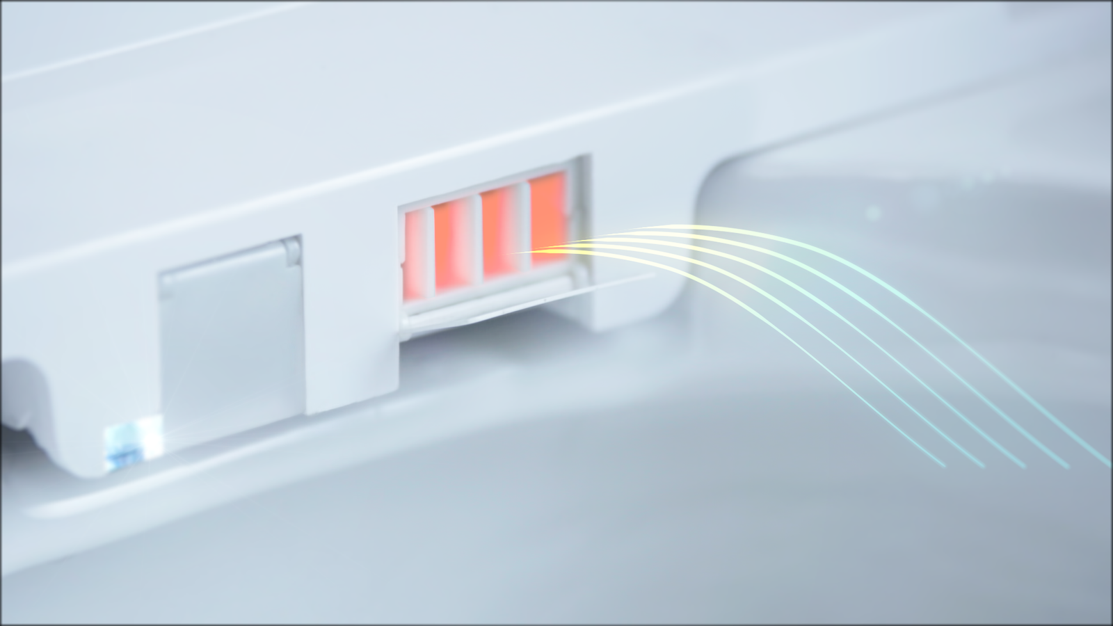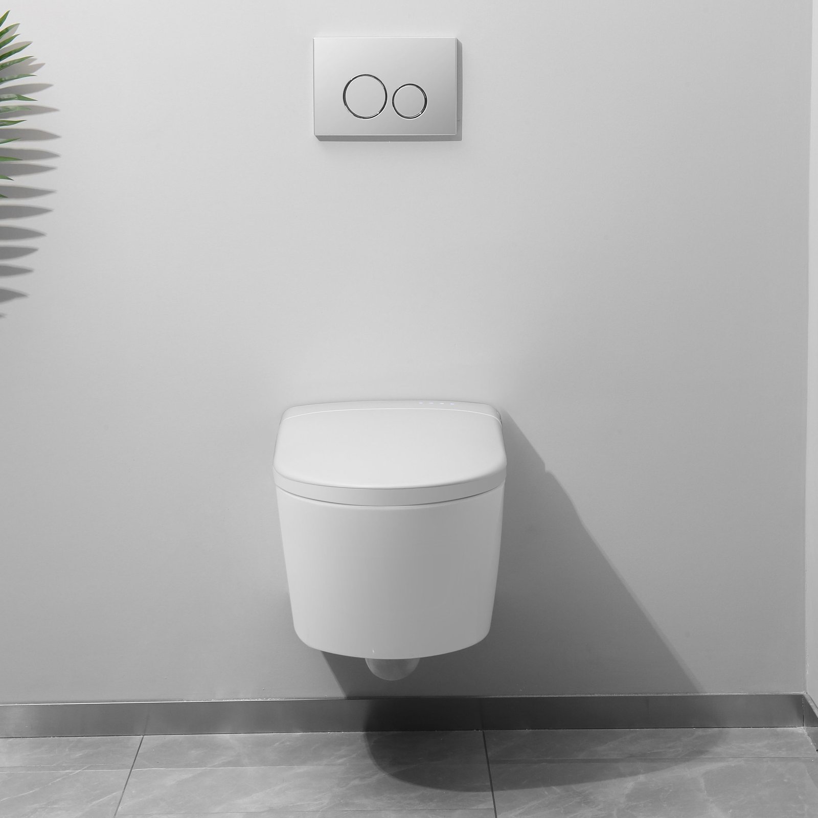 Wall-hung rimless design. Elegant classical styling, meets smart toilet functionality.