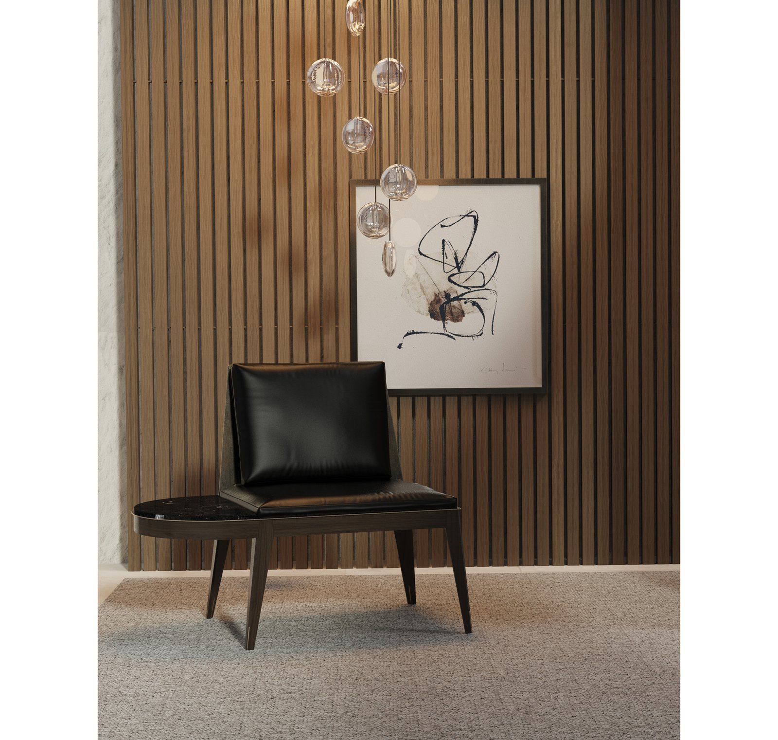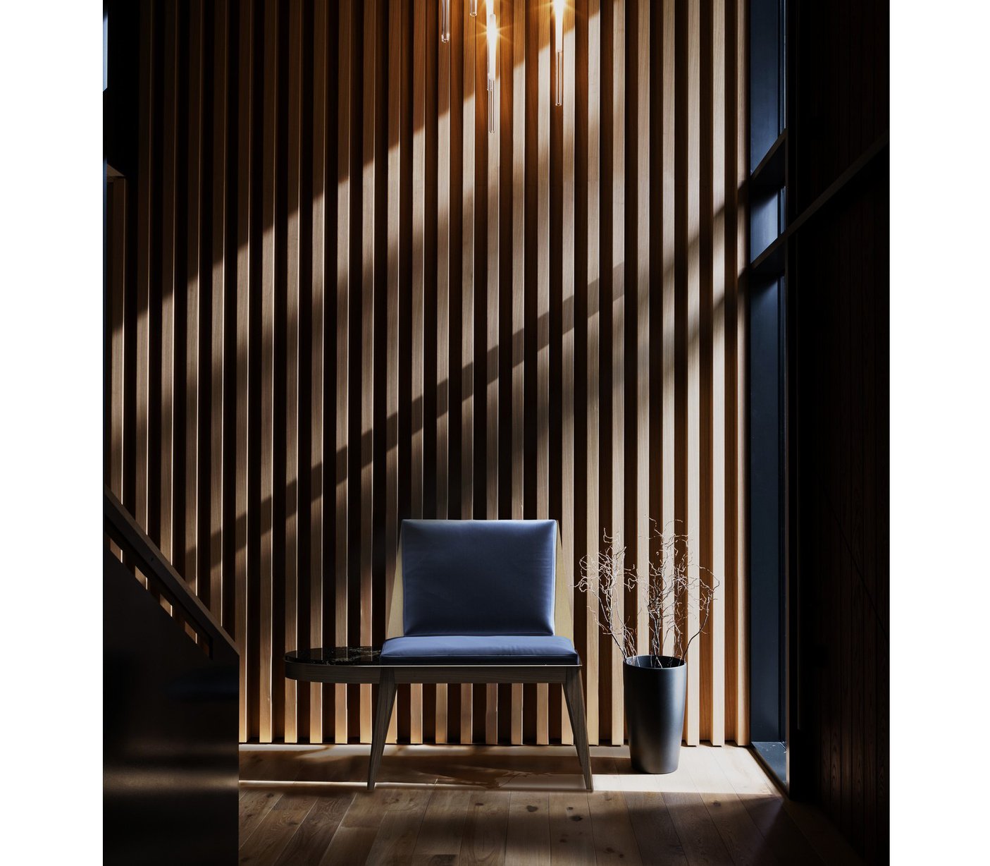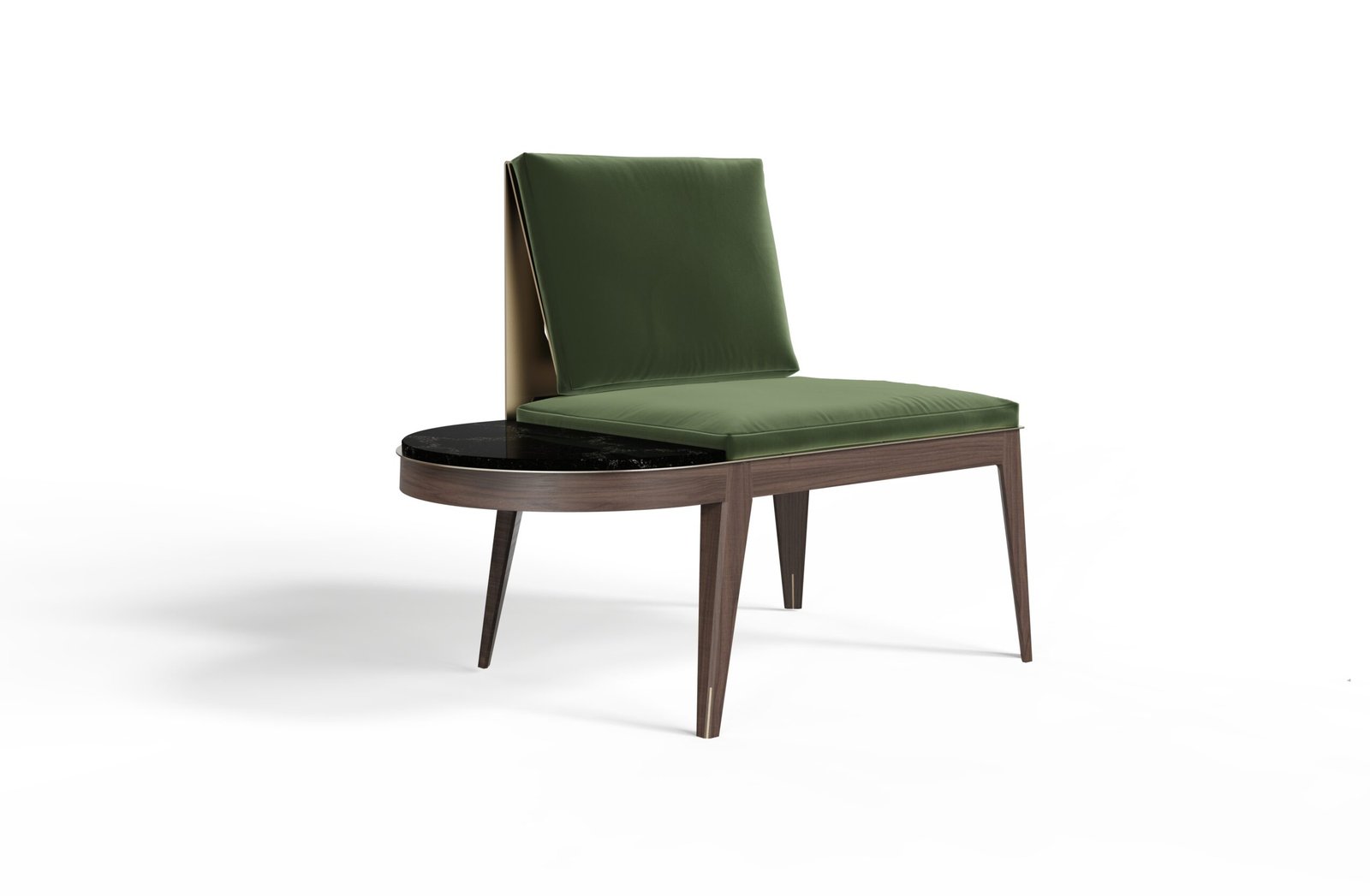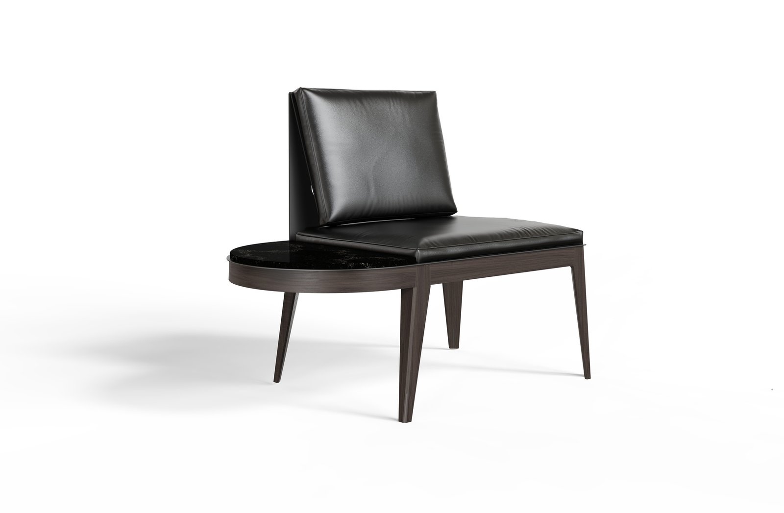 Blending comfort and practicality, the Wood Lounge Chair with side tray creates a seamless design. The attached tray, subtly integrated into the structure, offers a convenient surface without compromising the chair’s minimalist elegance.