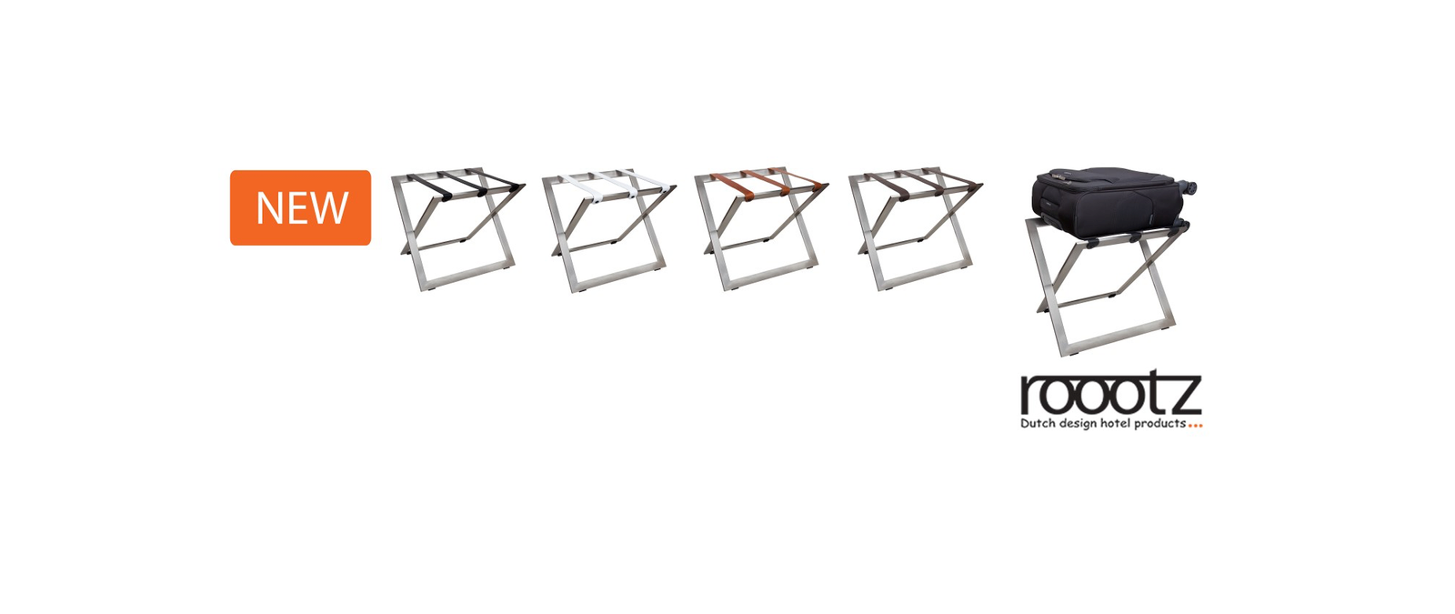 27th June 2019 The roootz compact hotel luggage racks can be found in many hotel rooms around the globe already. This Dutch Design luggage racks are ultra-compact and available from stock in 48 different options: with backstand, without backstand, with leather or nylon hotel luggage rack straps and in four different wood colors. The perfect luggage rack to fit every hotel room.