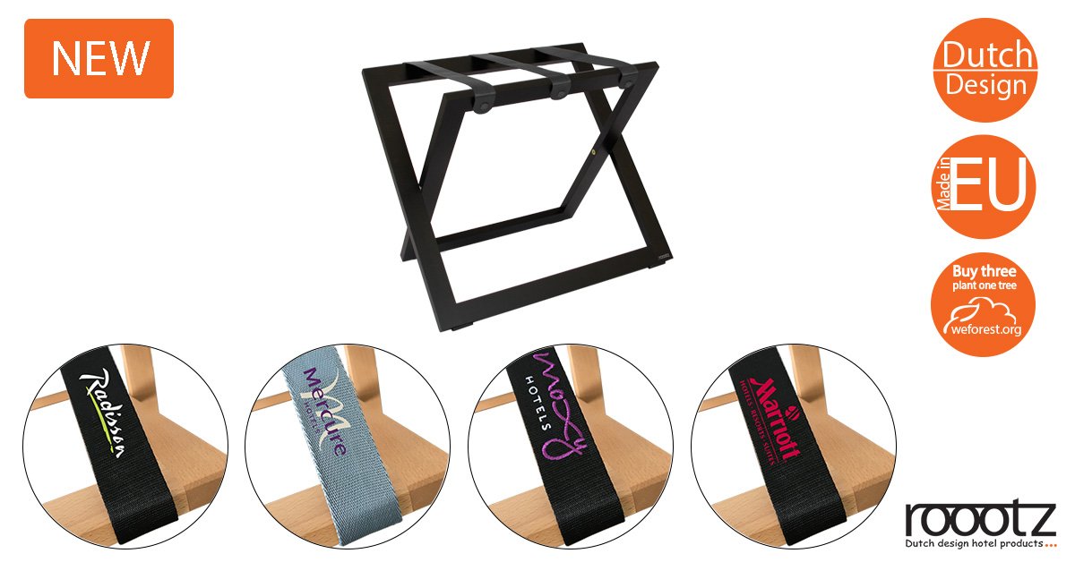 27th June 2019 The roootz compact hotel luggage racks can be found in many hotel rooms around the globe already. This Dutch Design luggage racks are ultra-compact and available from stock in 48 different options: with backstand, without backstand, with leather or nylon hotel luggage rack straps and in four different wood colors. The perfect luggage rack to fit every hotel room.
