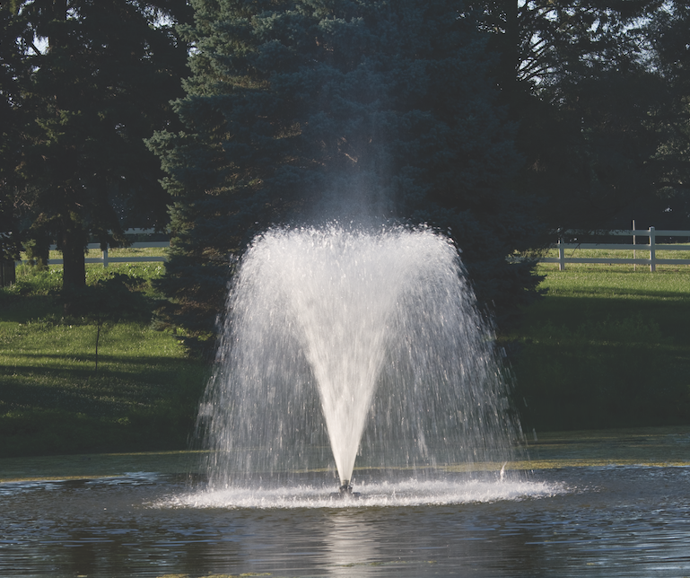 The Select Series 2 Crown Gusher floating lake fountain creates a high conical pattern, making it ideal for smaller coves or narrow areas. We can provide the select series 2 fountain in a range of sizes from 0.75Kw to 5.5Kw. The client selected 3.7Kw to meet his waterbody requirements. All of the Select Series 2 range are equipped with a very large grill designed to provide reduced suction around the screen. This results in fewer blockages caused by leaves and other debris from the lake bed. It also ensures that you get a larger volume of water passing through the fountain for greater circulation. The Select Series 2 floating lake fountain is available in a horizontal or vertical configuration. Find out more on the project here.