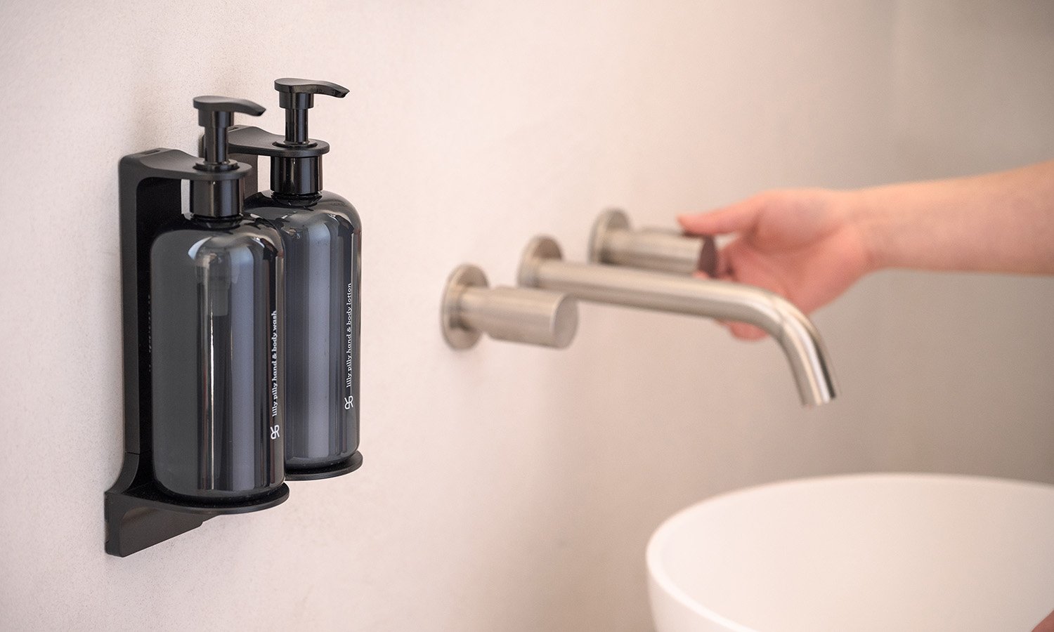 Bracket Systems – Pluma, our feather light bracket system complements our large format bottles and offers unrivalled amenity security and convenient servicing with a streamlined, modern aesthetic. A versatile solution for both in-room or public areas, our Pluma brackets are highly durable and resist scratches and watermarks.