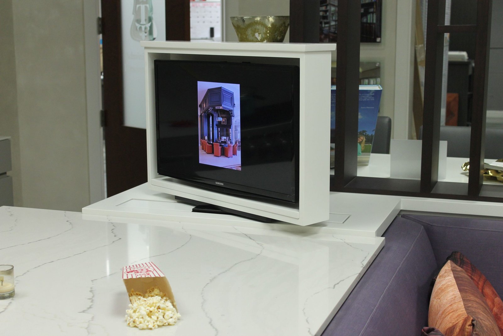 From there, word got out about our products, and we were asked about designing a product that can move artwork or a panel of some kind to reveal a TV behind it. While there were some companies out there that were manufacturing these types of products, few if any would allow for the end user to use their own personal artwork for its display. So we set out solely with that goal in mind, and managed to design a few different models to achieve that goal, and to keep the product simple yet elegant.