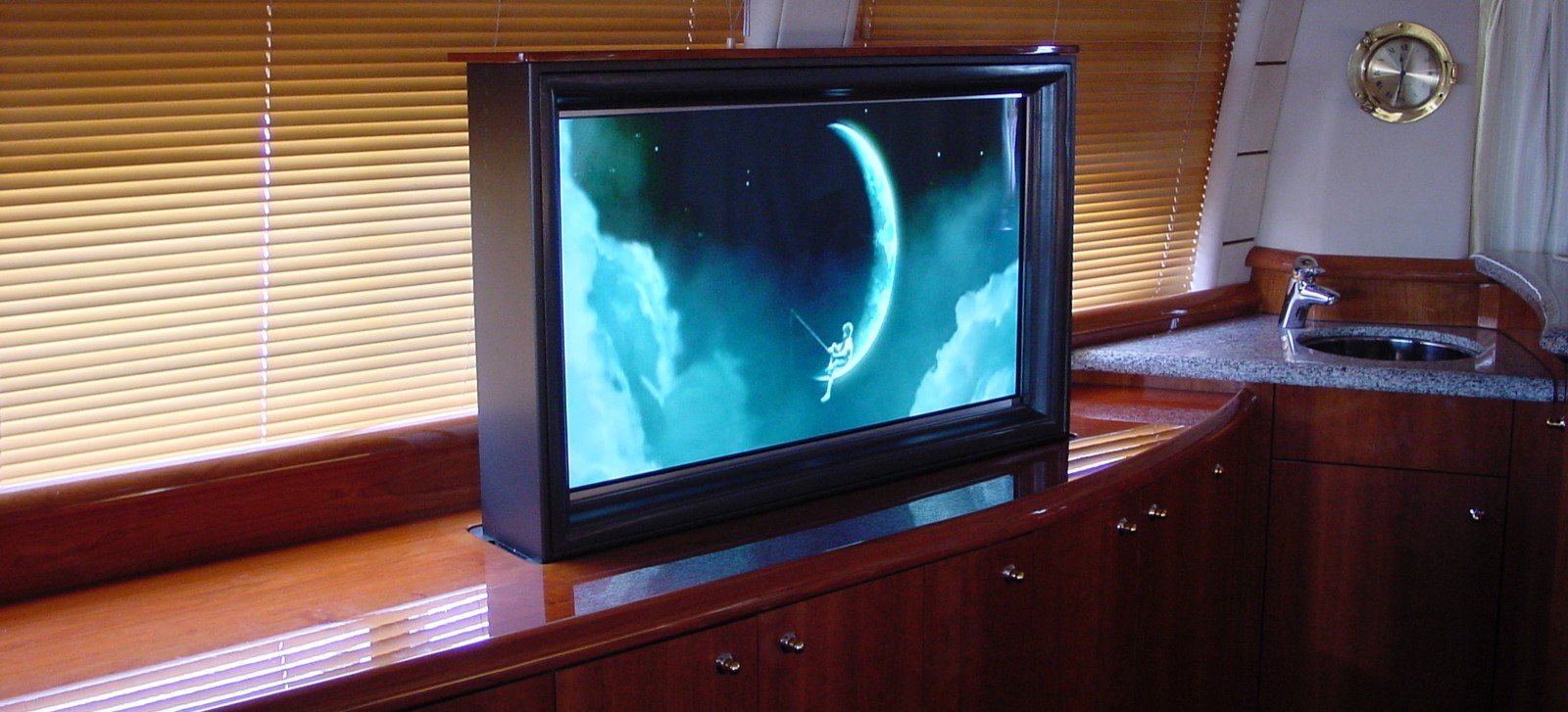 We began our journey into this business by designing and building our Pop-Up Lift product for yacht interior applications. From there, and still in the yacht market, the need to conceal TVs in the overhead ceiling became a hot topic, so we designed and built what is called our Fold-Up Lift line of products to meet that demand. While these TV Lift products were initially meant for yacht applications, we figured if they function properly on a moving vessel on the water, then they would most certainly work in home and even luxury motor coach applications as well, so we branched out into those markets too.