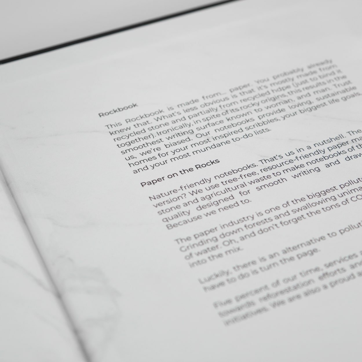 Possibilities for stone paper are endless, they include maps, menus, badges, brochures, books and booklets, guides, programs and customized stationary such as Rockbooks.