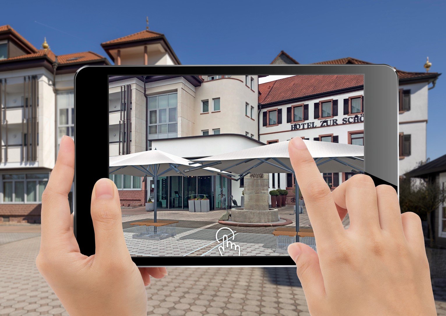 The CARAVITA Designer is your configurator for the virtual planning of your parasol. Through the Augmented Reality app, BIG BEN and Co can be easily configured, and your personal location of use can be visualised.