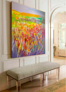 She creates large scale oil paintings & fiber art. Working collaboratively with consultants and designers, her team designs site-specific works and also makes an extensive catalog of wall art available to the trade. Fagan’s works are installed in France, Italy and in the U.S. in Boston, New York City, Riverside and more.